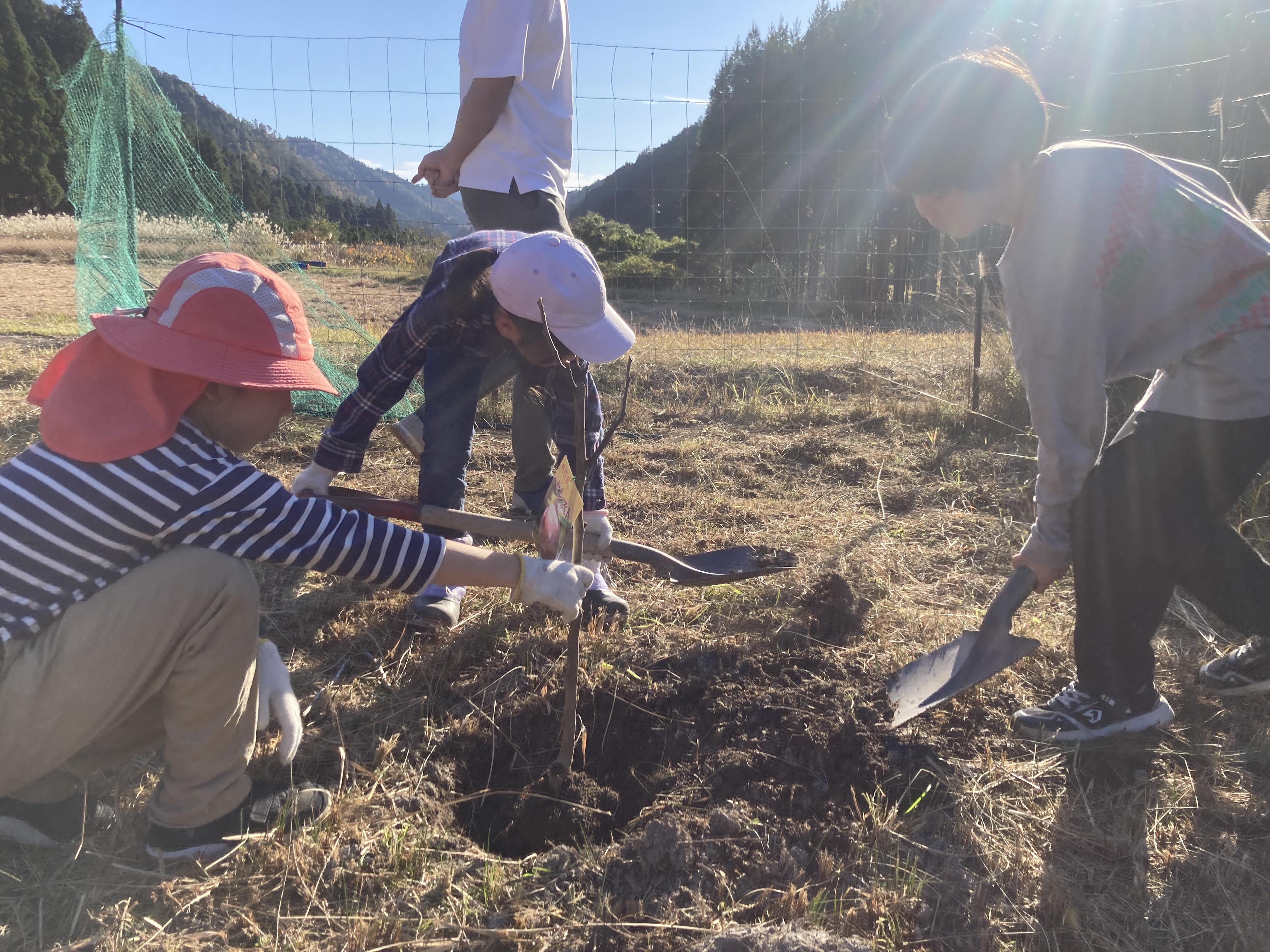 土を耕したり果樹を植えたり、土に触れ合っています。 使われていない土地にも手を入れます。